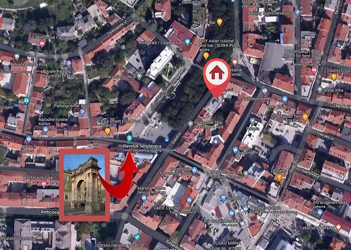 Este apartamento de 65 m^2 se encuentra a unos metros del Museo histórico y marítimo de Istria y el Arco de los Sergios está situado a alrededor de 5 minutos a pie. Desde este apartamento, la Šijana Forest está a 10 minutos en coche. El establecimiento también ofrece fácil acceso a La maison de l'huile d'olive d'Istrie, que está a 550 metros.